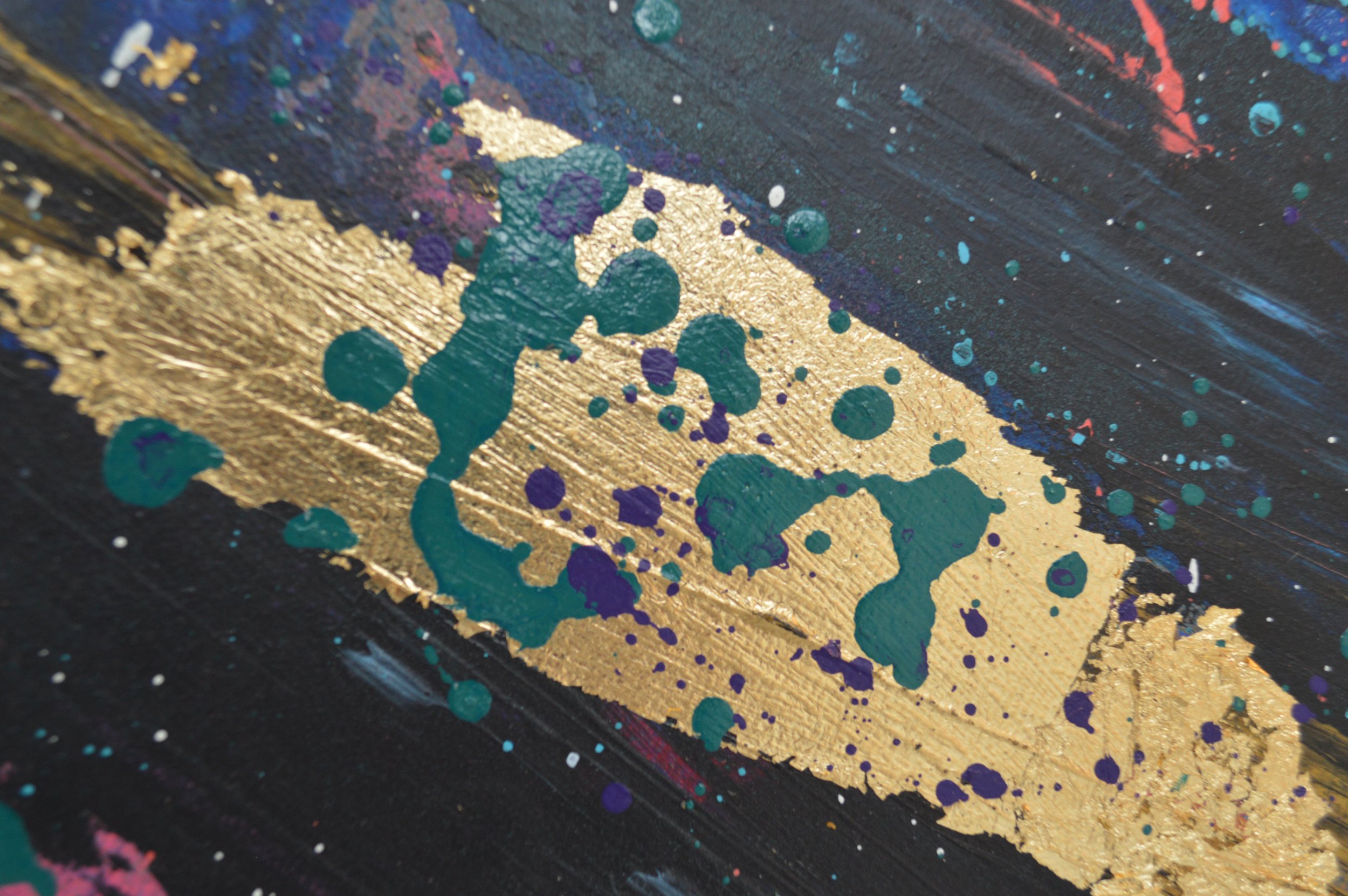 Discover a collection of paintings that seamlessly blends abstract concepts, graffiti, and fluid acrylic pouring to bring to life the captivating subject of intersectionality and transversal movement.